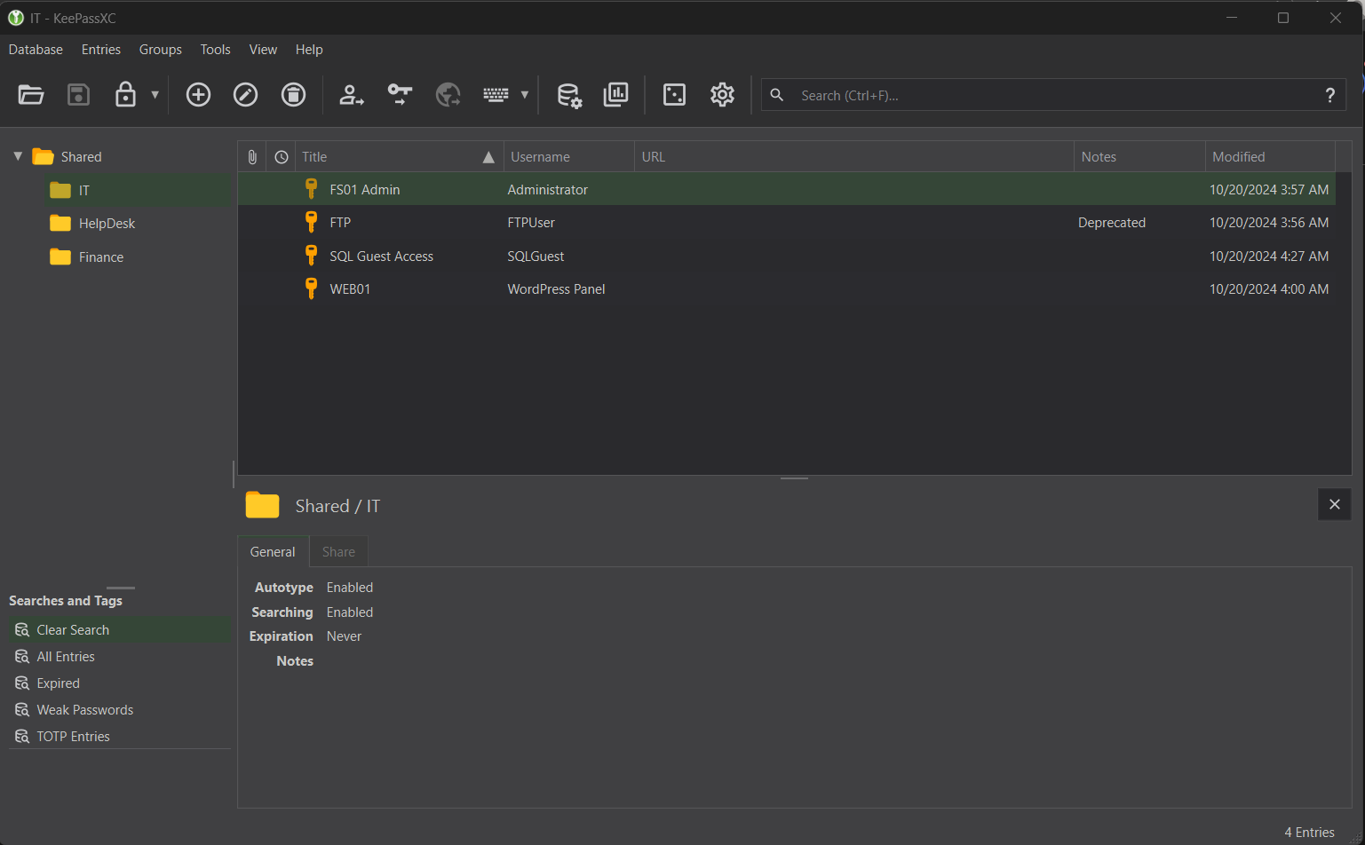 • Discovered that a user was sharing the same credentials as the KeePass database master password.