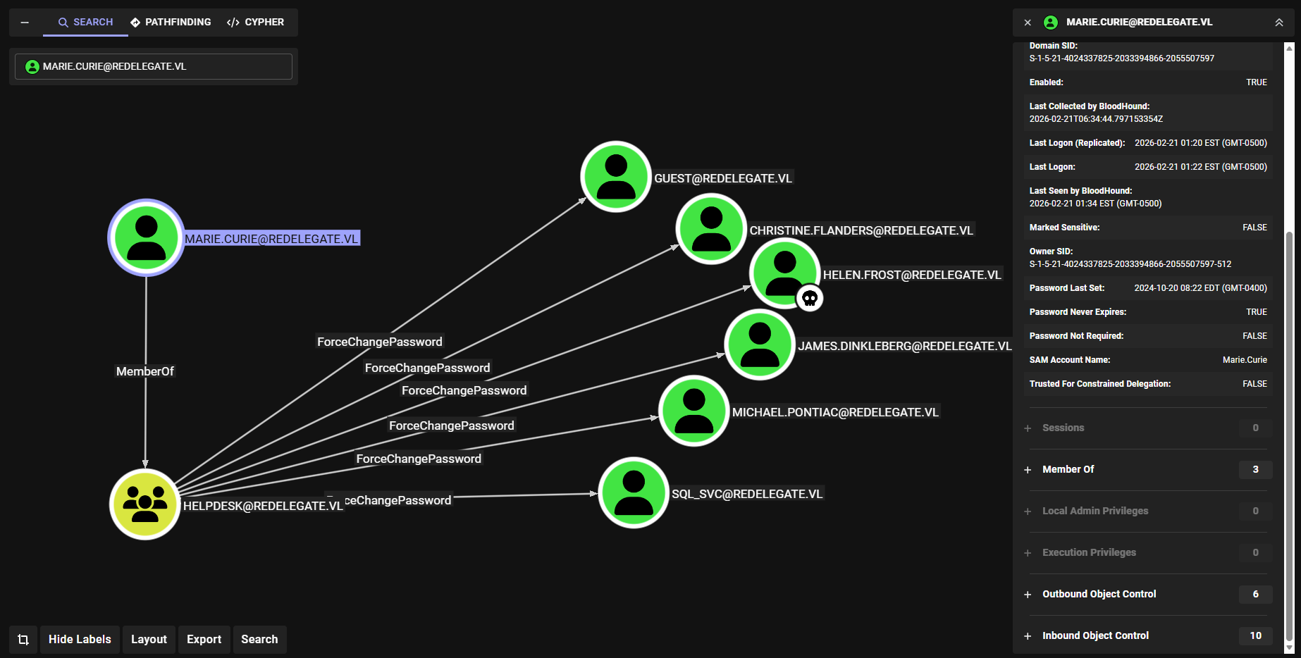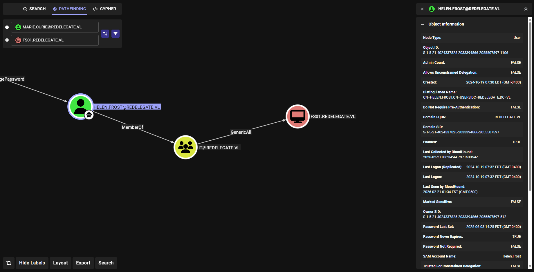 We don’t have that here, however we do have an alternative route in AD. Helen.Frost contains an outbound object control, specifically onto a machine object - FS01$.